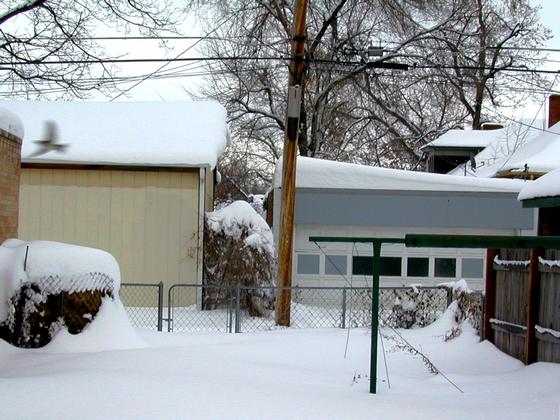 Looking across my back yard to the alley. At some point, I’ll have to shovel a path to the dumpster.