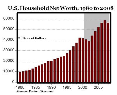 Well, cheer up! Sure, we've hit a bit of a rough patch recently, with the gas and food price increases and the mortgage mess (all of which are a consequence of liberal feel-good policies out of Washington). But so far, this century's really looking pretty good. Last Thursday, Mark J. Perry posted some evidence from Investor's Business Daily, leading off with another great graph (Perry does terrific charts and graphs) illustrating how much richer we've become: