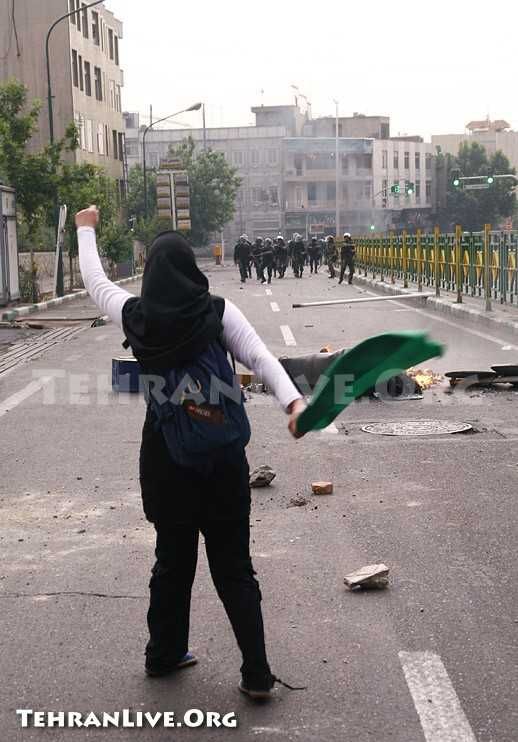 Tehran 24 has striking pictures and video from the last few days. Among many from Saturday, this compelling image reminiscent of Tiananmen stood out:
