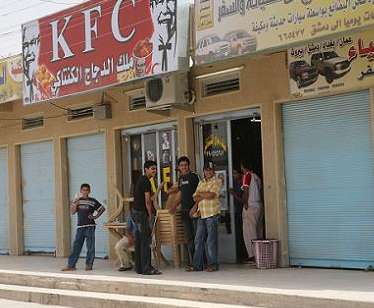 UPDATE (8/8): According to TPMMuckraker, this isn't a legitimate Yum! Foods (owner of KFC) franchise, just some enterprising Iraqis' attempt to capitalize on the brand identity by ripping off the trademark. But, hey, it still speaks well of the situation in Iraq (if not of the ethics of the entrepreneurs involved). The image of Col. Sanders and the KFC name are valuable and marketable in what was once a hotbed of violently anti-American, anti-Western sentiments. That's a good thing — except maybe for Yum! Foods. Maybe they should negotiate with the owners about making it a real franchise?